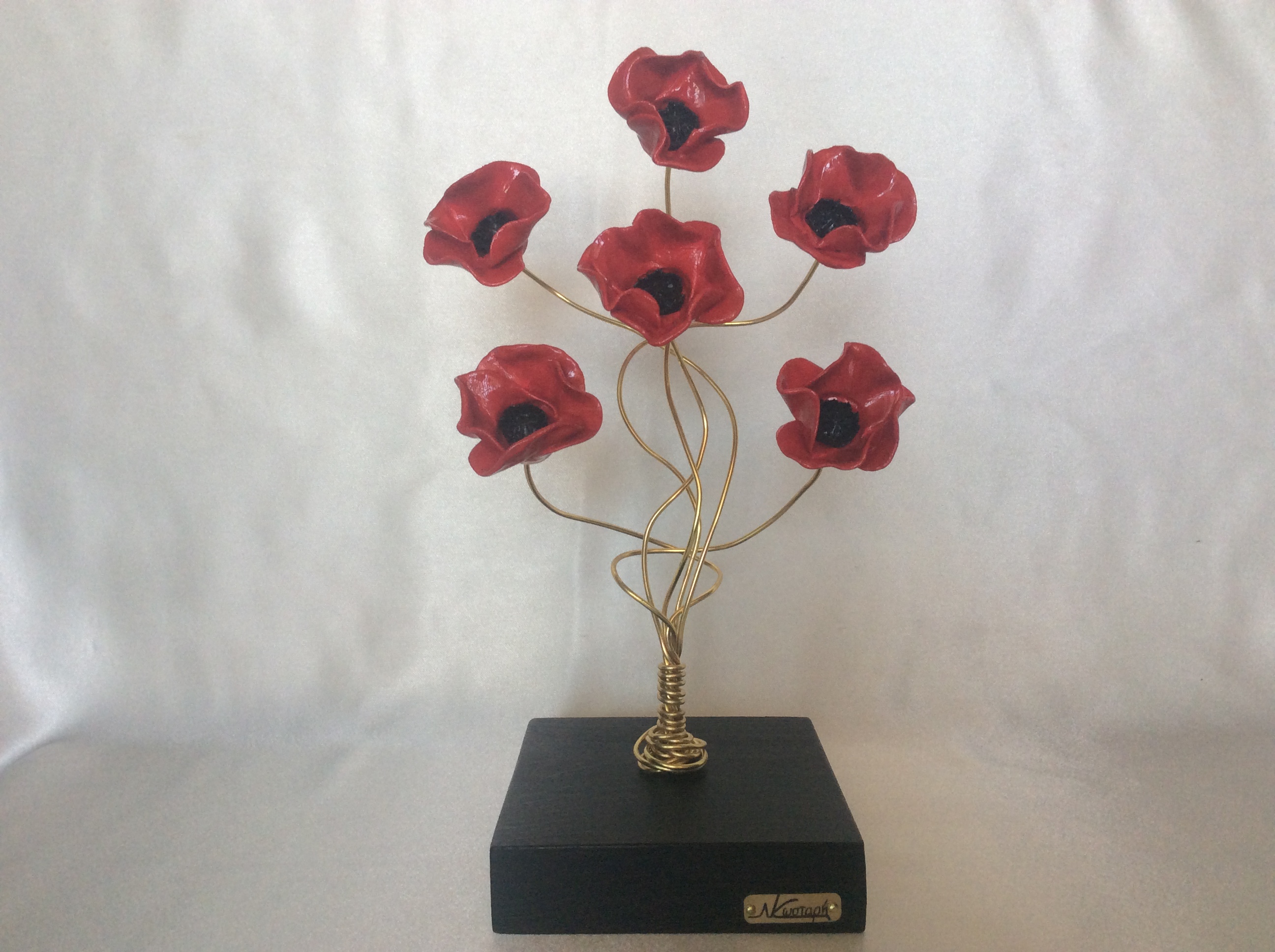 κόκκινες παπαρούνες, σύγχρονο γλυπτό, επιτραπέζιο δώρο, clay modeling
