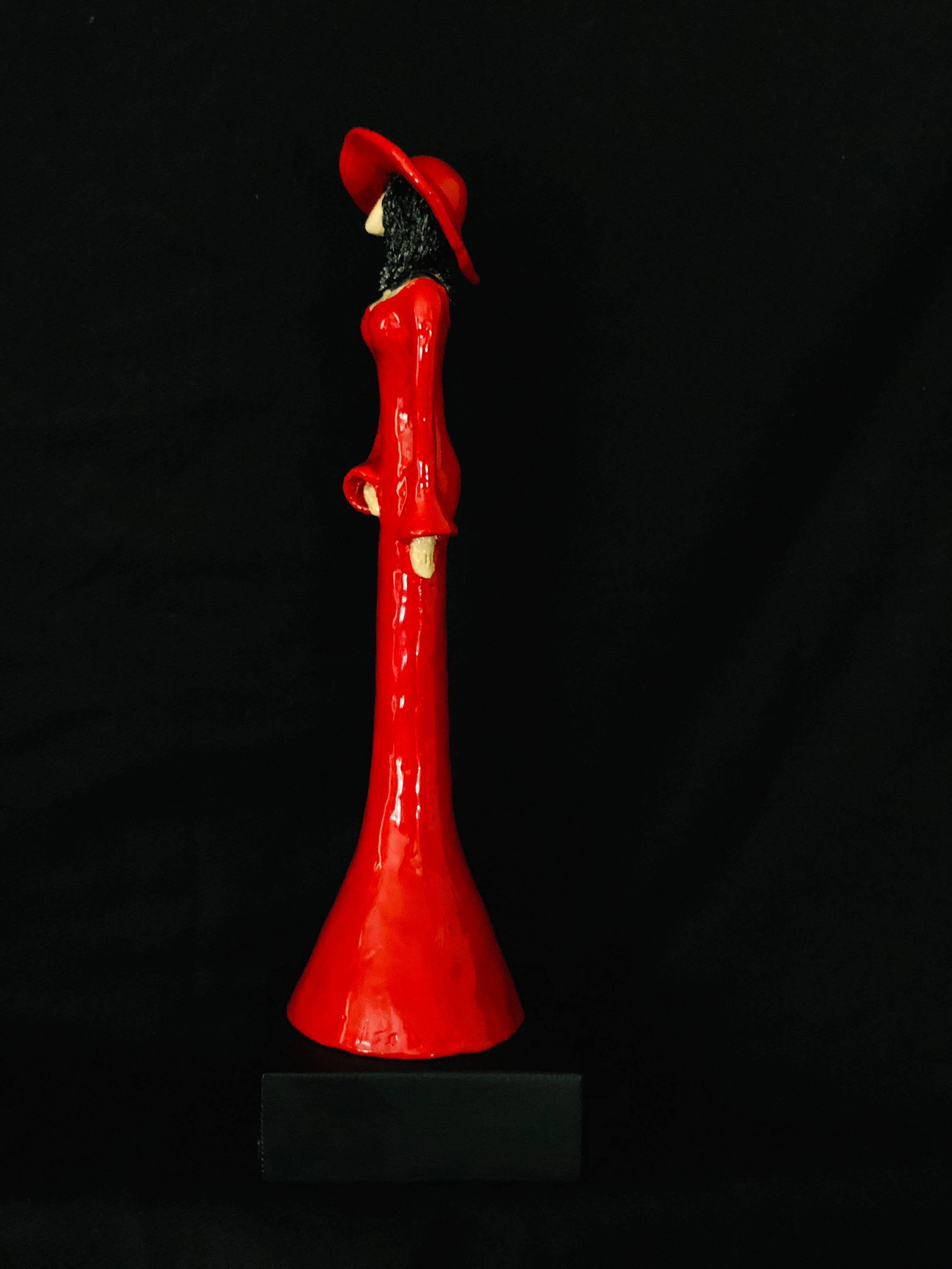 Μοναδικό χειροποίητο γλυπτό. Μια γυναικεία φιγούρα με μακρύ εντυπωσιακό φόρεμα και καπέλο, εμπνευσμένο από τη Γαλλική κουλτούρα. Ένα μοντέρνο χειροποίητο, μοναδικό γλυπτό που θα δώσει στο χώρο σας τον αέρα της Γαλλικής φινέτσας. Είναι φτιαγμένο με ιδιαίτερη φροντίδα στις λεπτομέρειες από πηλό. Είναι βαμμένη με σμάλτο και ειδικό βερνίκι για να μείνει αναλλοίωτη στο χρόνο. Τοποθετημένη πάνω σε μαύρη ξύλινη βάση.