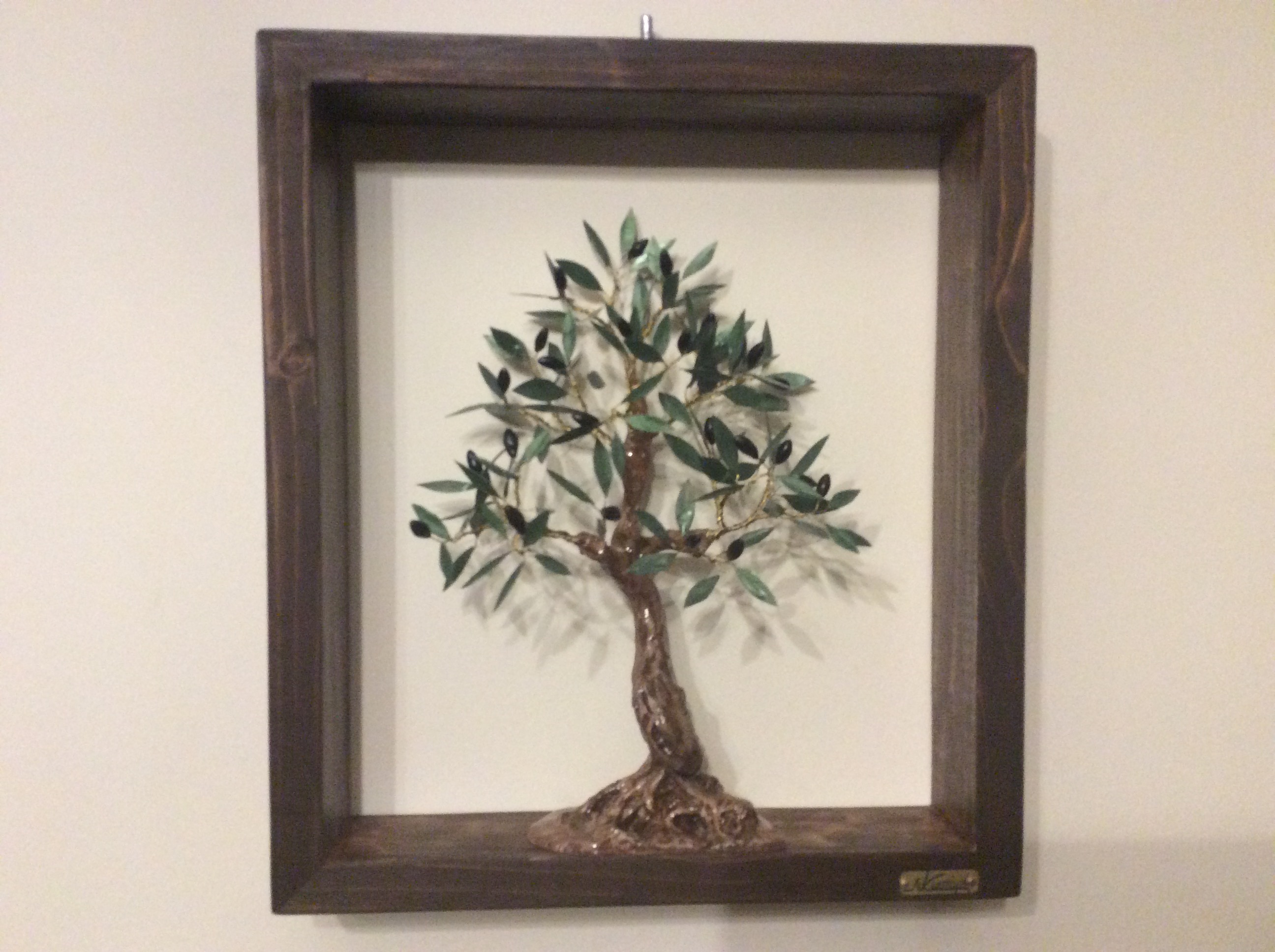 Διακοσμητικό δέντρο ελιάς με μαύρους καρπούς από πηλό σε κάδρο. Ο κορμός είναι δουλεμένος με πηλό με ιδιαίτερη φροντίδα στις λεπτομέρειες. Μοναδικό χειροποίητο κάδρο που αναπαριστά την ελιά, το ιερό και διεθνώς αναγνωρισμένο σύμβολο της ειρήνης και της ελπίδας. Ένα διακοσμητικό κάδρο με θέμα την ελιά κλασσικό δώρο με έντονο συμβολισμό και διαχρονική αξία .