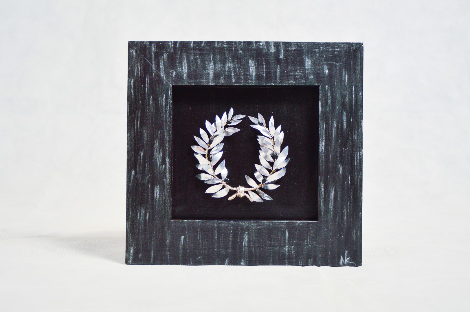 Το χρωμα της κορνίζας εναρμονίζεται τέλεια με το στεφάνι από αλουμίνιο.