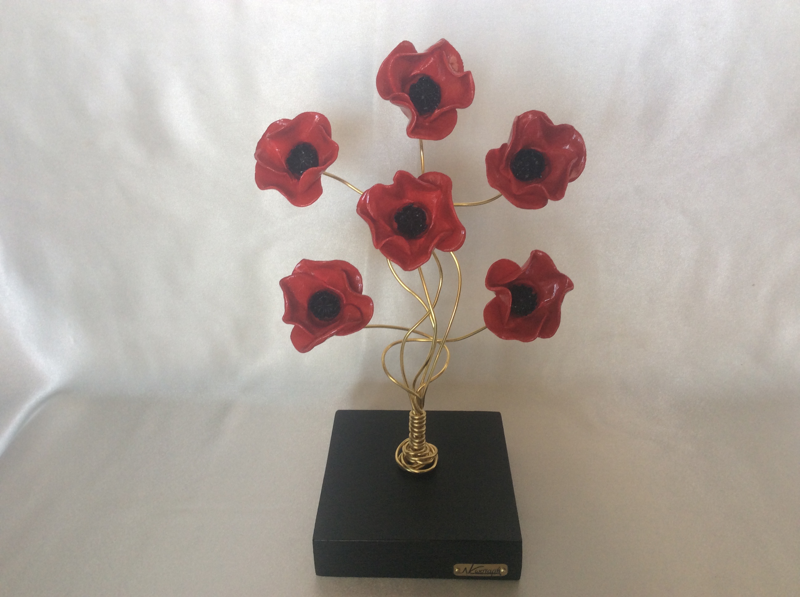 κόκκινες παπαρούνες, σύγχρονο γλυπτό, επιτραπέζιο δώρο, clay modeling
