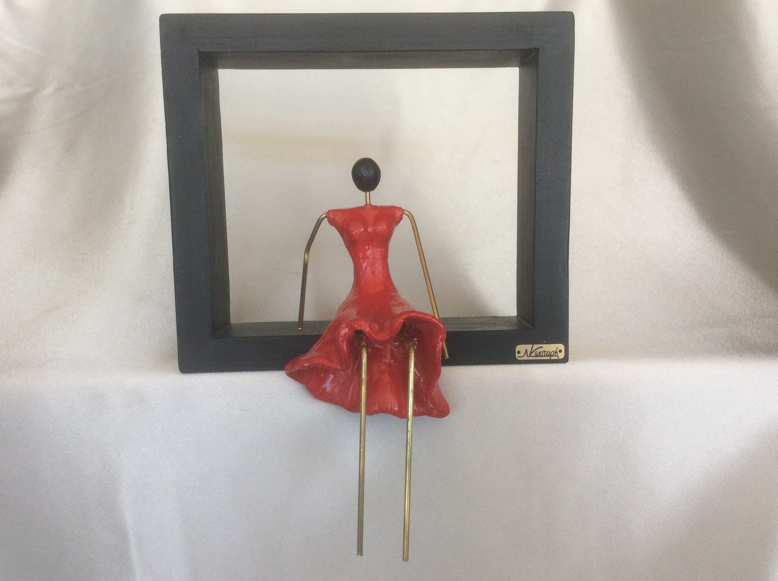 Κοπέλα με κόκκινο φόρεμα σε ξύλινο μαύρο ματ κάδρο. Η αντίθεση του κόκκινου μαύρου θα δώσει μια όμορφη νότα σε κάθε χώρο που θα τοποθετηθεί.