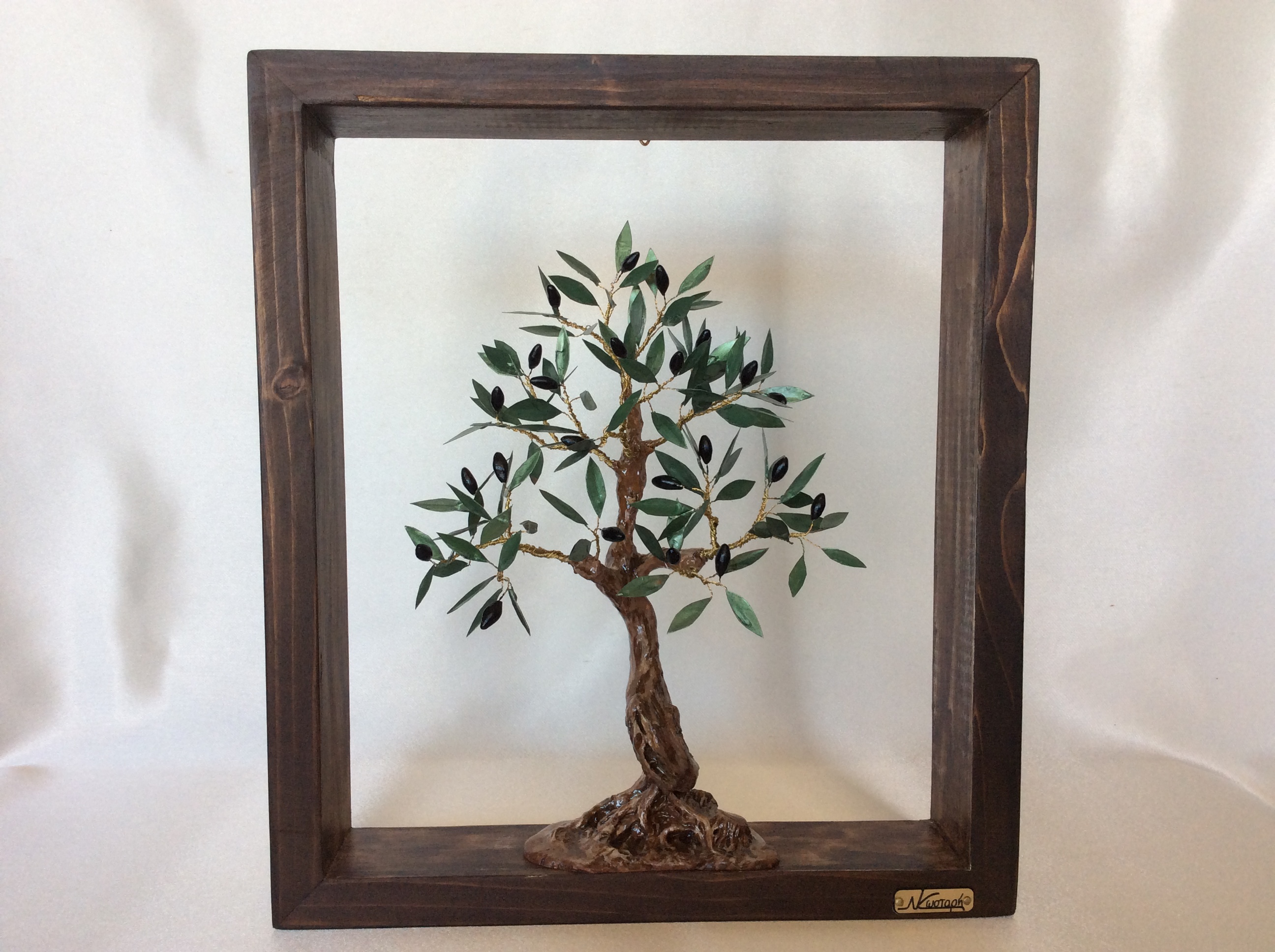 Διακοσμητικό δέντρο ελιάς με μαύρους καρπούς από πηλό σε κάδρο. Ο κορμός είναι δουλεμένος με πηλό με ιδιαίτερη φροντίδα στις λεπτομέρειες. Μοναδικό χειροποίητο κάδρο που αναπαριστά την ελιά, το ιερό και διεθνώς αναγνωρισμένο σύμβολο της ειρήνης και της ελπίδας. Ένα διακοσμητικό κάδρο με θέμα την ελιά κλασσικό δώρο με έντονο συμβολισμό και διαχρονική αξία .